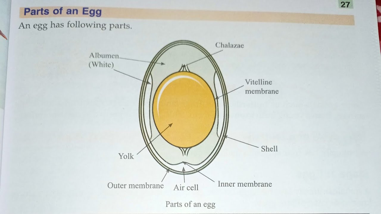 Using the diagram on the SMART board, discuss the different parts: shell= hard protective coating of the egg, yolk= yellow part of the egg that contains liquid food, albumen= the white-ish part of the egg that contains water and food, air cell= space at the end of the egg where the chick will take its first breath, membrane= grows around the ... The shell of the egg is one of the most recognizable and distinct parts of an egg’s entire anatomy. And it’s not difficult to see why. Eggshells’ symmetrical, oval shape, their smooth, seamless texture, and their lightweight, almost fragile feel — all neatly sitting inside a cardboard or styrofoam package — are staples in fridges and ... The yellow inside portion of the egg that provides minerals, vitamins, fat, and protein to the growing embryo. Albumen or White. A clear thin liquid that ...1 page 1. Eggshell · 2. Outer shell membrane 3. · 4. Chalaza -- are twisted in opposite directions and serve to keep the yolk centered. · 5. Exterior albumen (outer thin ...