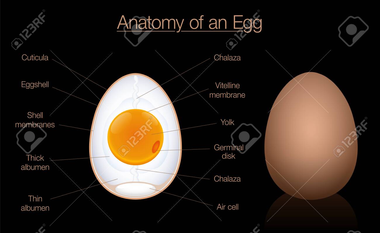 Egg Anatomy Cross Section Structure Of A Birds Egg Labeled Chart With Names Of The Components Isolated Vector Diagram Illustration On Black Background Royalty Free Cliparts Vectors And Stock Illustration Image 150134465