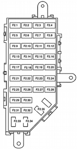 Fuse box diagram (fuse layout), location and assignment of fuses and relays Ford Explorer Sport Trac (2000, 2001, 2002, 2003, 2004, 2005).
