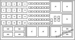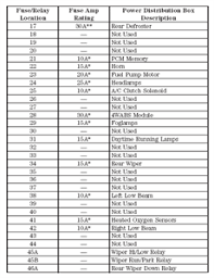 Fuse and relay locations--2nd generation power distribution box Layout- I think this is a good sticky candidate--. Fuses are listed here. * = maxi fuse. 1*=50A I/P fuse panel. 2*=40A blower motor relay. 3*= 50A 4 wheel ABS module. 4*=20a Main light switch-Instrument cluster. 5*=50A Ignition switch, starter relay.