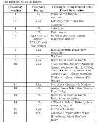 Ford Explorer Sport Trac (2000 – 2005) – fuse box diagram. Year of production: 2000, 2001, 2002, 2003, 2004, 2005. Passenger Compartment Fuse Panel