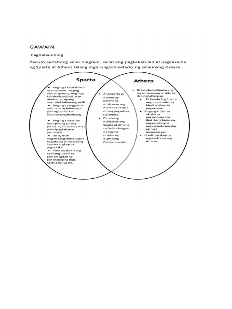 Creately diagrams can be exported and added to Word, PPT (powerpoint), Excel, Visio or any other. 2 Activity Read pages of your textbook. Athens vs. Sparta ( Venn Diagram) Create a Venn Diagram to compare Sparta and Athens Things to compare: 1. Location 2. Attitude towards trade. Sparta vs. Athens Webquest women characters.