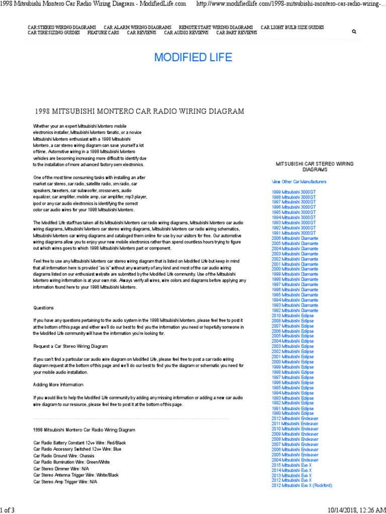 5 Jul 2009 · 5 posts · 2 authors2002 Mitsubishi Lancer ES Radio Wiring - i need the radio wiring info, thanx... posted in the12volt's Install Bay Vehicle Wiring Information ...