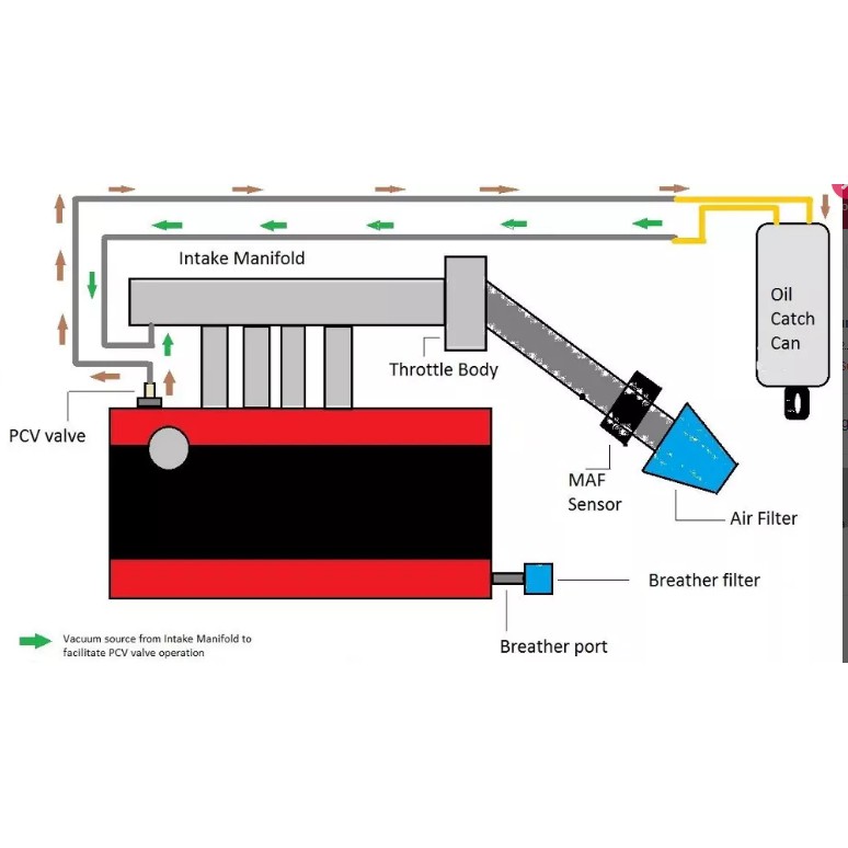 An oil catch tank (can) is fitted in line of the crank case breather system. It is placed in between the breather outlet and the intake system. As the crank vapors pass through the catch tank (can) the oil droplets, un-burnt fuel, and water vapor condense and settle in the tank. This stops them from reaching the intake and causing the issues ...