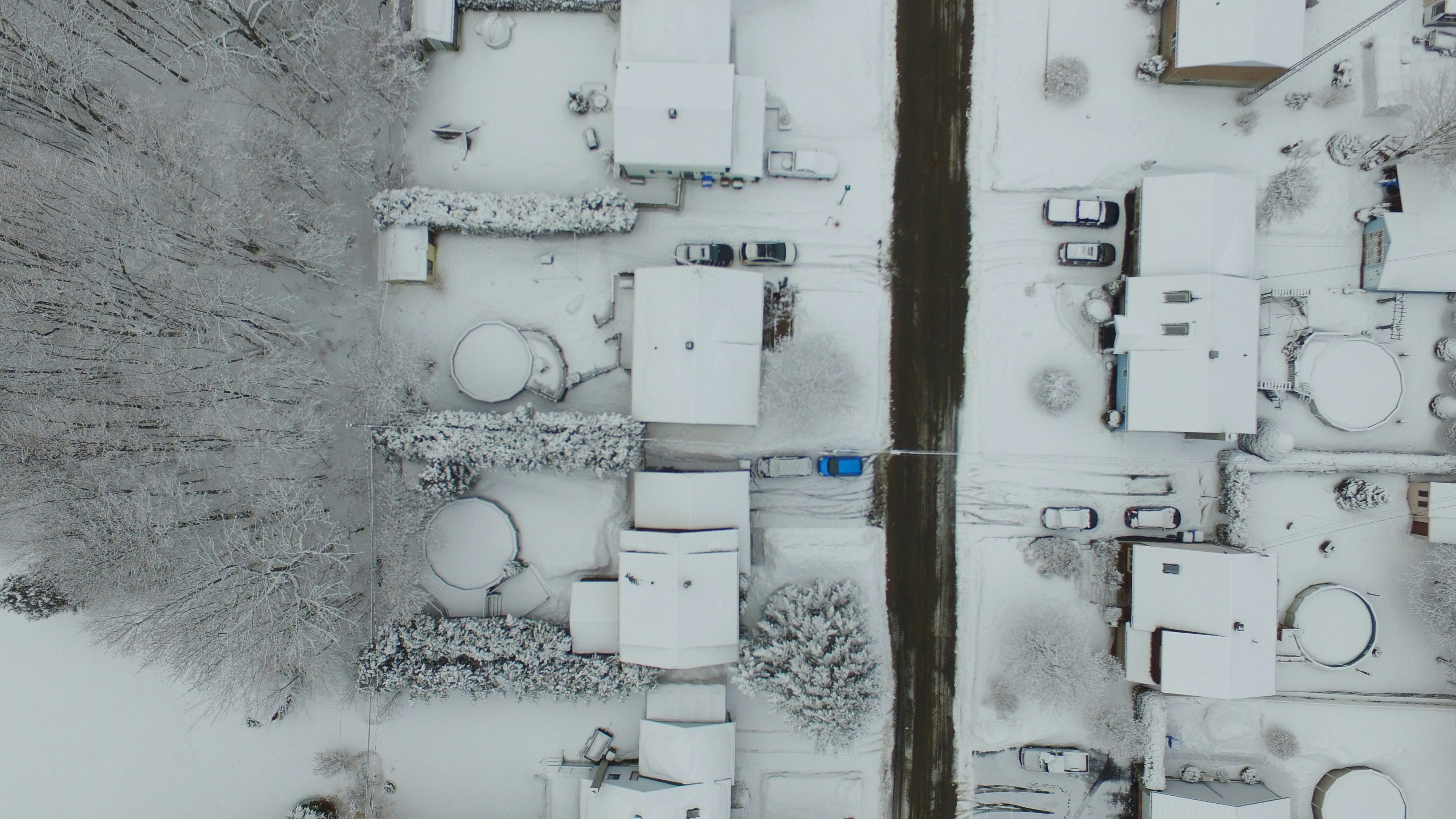 Drone flying over a springtime snow fall and came across some color.