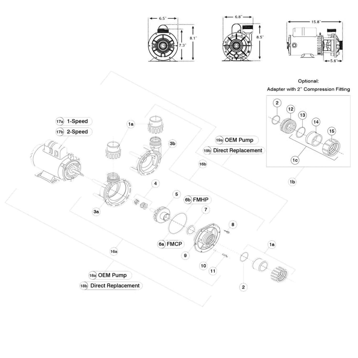 Aqua-Flo - Flo-Master XP/XP2, 48FR, 2.5HP, 230V, 2SPD ... Aqua-Flo FMXP/XP2 2.5 HP 230V 2-Speed 2" Side Discharge 48 Frame Pump By Gecko - 06125000-1040 Or 1-00-0093B (or 4.5 SPL) 10.0/2.9 Amp 48 Frame 230 Volt 2 Speed 2.5 HP Coleman Spas Part Number: 101249, 101-249 Aqua-Flo FMXP/XP2 Plumbing Measures 3 1/16"