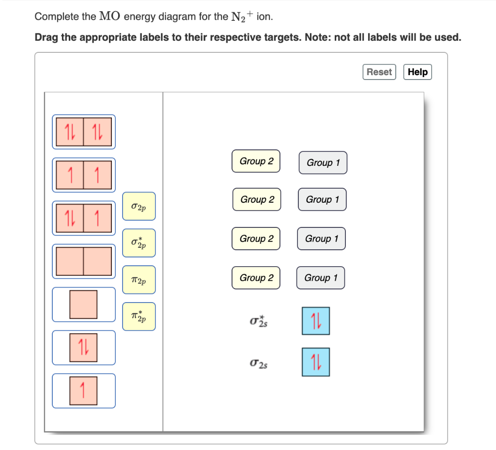 Complete An Mo Energy Diagram For H2+. Answer to Create an MO diagram for H2+ H2 and H Post the Lumo, lumo -, homo, homo + near its energy level. Molecular Orbital (MO) Theory of the H2 molecule: Following the MO treatment of H2+, assume the (normalized) ground electronic state wavefunction is . Qualitative MO theory orbital diagram for homonuclear diatomics composed of 1st or. Is N2+ diamagnetic or paramagnetic?... | Clutch Prep Q. Complete the MO energy diagram for the N2+ ion. See all problems in MO Theory: Homonuclear Diatomic Molecules Frequently Asked Questions What scientific concept do you need to know in order to solve this problem? Our tutors have indicated that to solve this problem you will need to apply the MO Theory: Homonuclear Diatomic Molecules concept. ...