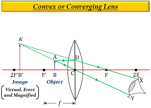 Virtual image lens diagram. Difference Between Real Image and Virtual Image - VEDANTU A virtual image is formed by tracing real rays that arise from an optical device like a mirror or lens, backward to apparent origins of ray divergences. In the diagram of the optical system, the dotted lines represent the conventional virtual ray. Concave and Convex Lenses - Image Formation | Curvature ... The size of the image is larger than that of the object. Concave Lenses. When an object is placed at infinity, a virtual image is formed at the focus. The size of the image is much smaller than that of the object. When an object is placed at a finite distance from the lens, a virtual image is formed between the pole and the focus of the convex ... Rules for identifying sign in Convex and Concave Lens ... 15.05.2020 · If a virtual image is formed, image is formed on left side, so image distance is negative Since object is always above the principal axis, object height will be positive If image is above the principal axis, image height will be positive. It means that image is erect If image is below the principal axis, image height will be negative. It means that image is inverted Next: … (a) Explain what is meant by a virtual, magnified image.(b ... (b) Draw a ray diagram to show the formation of a virtual magnified image of an object by a convex lens. In your diagram , the position of object and image with respect to the principal focus should be shown clearly. (c) Three convex lenses are available having focal lengths of 4cm,40cmand 4mrespectively .