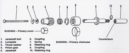 EVO starter jackshaft | Harley Davidson Forums EVO starter jackshaft. Jump to Latest Follow. i'm working on a 1992 flstc and i have a question about the starter jackshaft coupling. please refer to the picture. is the coupling retained by a snapring? it's been awhile since i took it apart and can't remember. i'm having a hard time seating it deeper than...