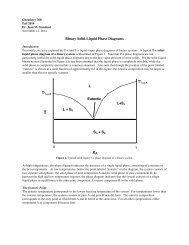 “Bligh and Dyer” and Folch Methods for Solid–Liquid ... 27.3.2017 · The first step is a solid–liquid extraction from an initial amorphous gel state, followed by a second liquid–liquid partitioning step. In the second step, the initially extracted mixture of all biomolecules is separated into two phases: an organic-rich phase (OR) containing the total lipids and a water-rich phase (WR) containing others compounds (sugars, proteins, etc.). LAS 3_LESSON ACTIVITY SHEET IN GENERAL CHEMISTRY II.docx ... on the melting point of the solid. Anywhere on this line, there is equilibrium between the solid and the liquid. 2. The blue line divides the liquid and gas phases, and represents vaporization (liquid to gas) and condensation (gas to liquid) points. Vaporization (or condensation) curve - the curve on a phase diagram which represents the transition between gaseous and liquid states. EUTECTICS - A Practical Guide to Phase Diagrams Below is the phase diagram of the lead (Pb)-tin (Sn) system. In this section, the Pb-Sn phase diagram will be discussed in detail, but first there a few basic components of phase diagrams to discuss. First there are the axes. The vertical axis shows temperature, while the horizontal axis shows the concentration of some species. Chapter 8 Phase Diagrams - Central Michigan University The system enters the two phase region labeled 'liquid + B'. Pure solid B begins to come out of solution and the remaining liquid becomes richer in A. (2) a 2 ® a 3. More of the solid forms, and the relative amounts of the solid and liquid (which are in equilibrium) are given by the lever rule.
