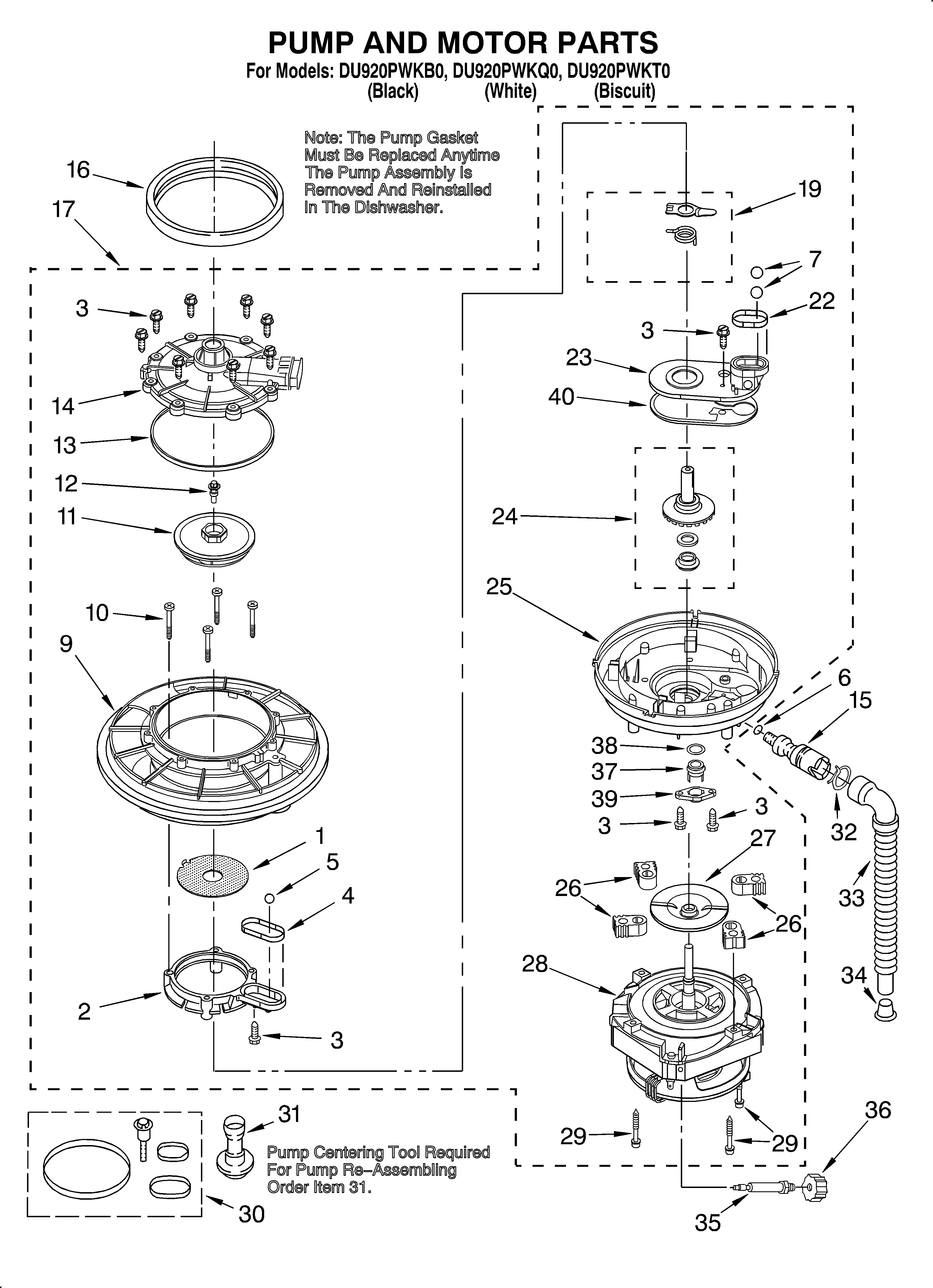 Whirlpool Quiet Partner II DU943PWKT0 Not Draining Whirlpool Quiet Partner II DU943PWKT0 Not Draining ... Parts & Diagrams. Model Number, Part Number or Description ... I have a Whirlpool Quite Partner II, DU943PWKT0 that is not draining. After a cycle it does not drain, also it does not drain when pressing the cancel/drain button. The motor runs but nothing goes down.
