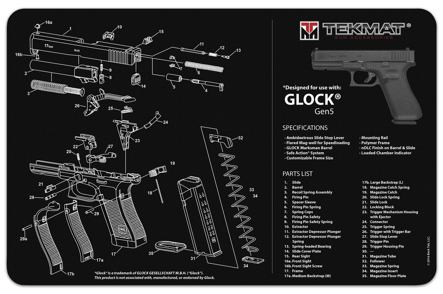 PDF Glock Pistol Disassembly / Assembly - Glock Trigger Upgrade Trigger Safety Check With your Glock re-assembled, check to make sure it is "UNLOADED" With the gun pointed in a "Safe Direction" grab both sides of the trigger, making sure not to depress the trigger safety. Push the trigger toward the rear of the trigger guard. A functional trigger safety will hit the Glock Nomenclature Diagram - schematron.org Identification of Various Glock Parts 3 2. Exploded Schematic of a Glock Pistol with Parts List 4 3. Glock Field Strip Disassembly Trigger Diagram Magazine Identification. Glock Parts Exploded View Diagram Find this Pin and more on A: Firearms Gunsmithing - nomenclature, specs, diagrams, and part list by Scott White. Glock Pistol Schematic - Exploaded Gun Diagrams, Gun Parts - MidwayUSA Back to Gun Schematics Glock Pistol Schematic. Find parts for a Glock Pistol in this easy-to-understand schematic. These gun diagrams will help you better understand how your firearm is assembled with links to the gun parts for easy check out. PDF THE UNOFFICIAL GLOCK ARMORER S ANUAL - LimaGuns S. A. The Unofficial Glock Armorer's Manual Complied by John Hisghman October 1999 Section Name Page Numbers 1. Identification of Various Glock Parts 3 2. Exploded Schematic of a Glock Pistol with Parts List 4 3. Glock Field Strip Disassembly 5-8 4. Cleaning the Field Stripped Firearm 9 5. Lubrication Points 10 6.