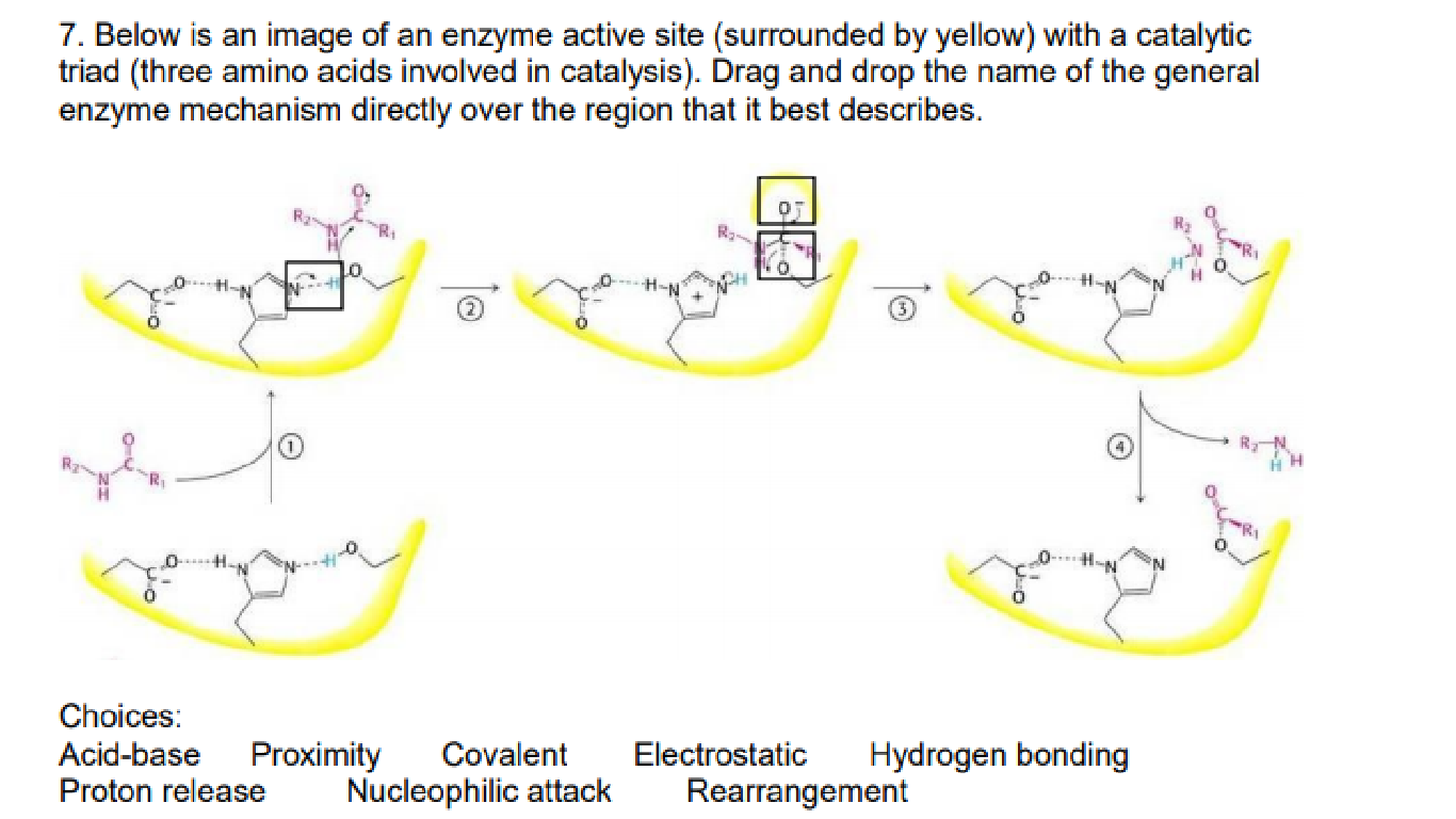 Catalysis | Chemistry for Majors - Lumen Learning Reaction diagrams for a chemical process with and without a catalyst are shown below. Both reactions involve a two-step mechanism with a rate-determining first step. Compute activation energies for the first step of each mechanism, and identify which corresponds to the catalyzed reaction. Reactions and Mechanism of Enzyme Catalysis - VEDANTU Enzyme Catalysis - An enzyme is a substance which fastens a chemical reaction. A substrate is attracted towards the active site of the enzyme which leads to the catalysis of a chemical reaction and formation of products. Read more about the Reactions and mechanism of enyme catalysis at vedantu.com. Biochem Chapter 7: Enzyme Mechanisms Flashcards | Quizlet Reaction coordinate diagrams clearly show that the energy of an enzyme bound to a transition state is higher than the energies of the E + S, E + P, and ES that occur along the same reaction coordinate. The energy of an enzyme bound to a transition state analog would lie _____ in the diagram. Energy diagrams for enzyme‐catalyzed reactions: Concepts ... Most modern Biochemistry textbooks, resting on the energetic profile of enzymic reaction, try to bridge the gap between the thermodynamic and the mechanistic description of enzyme action. In this sense, the energy diagram for an enzyme-catalyzed reaction is an invaluable teaching and learning tool.