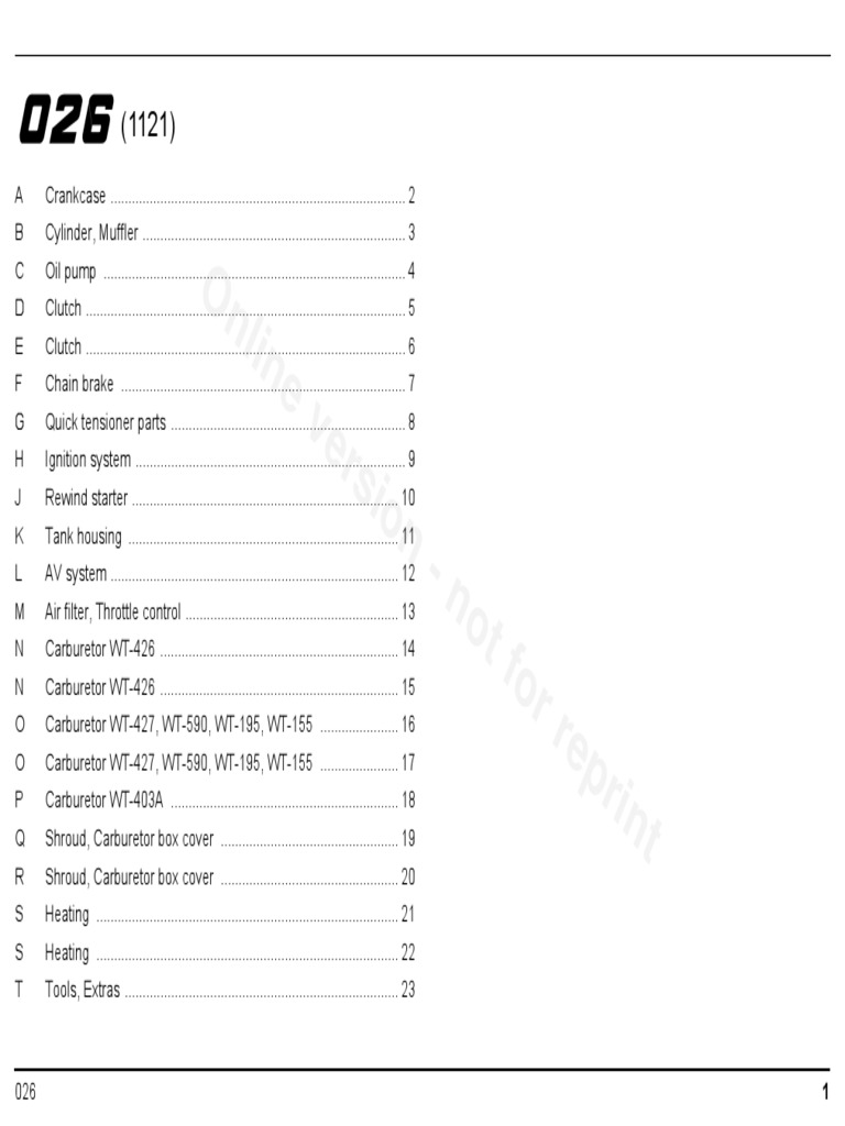 Stihl 066 Parts List Manual - CWM Contents of Stihl 066 Parts list Manual Introduction, Specifications, Clutch, Engine, Ignition system, Rewind starter, Throttle control, Fuel system, carburetor, Av system, Shaft, Cutting tool drive, Support frame, Special servicing tools and aids Stihl 066 Chainsaw Specifications
